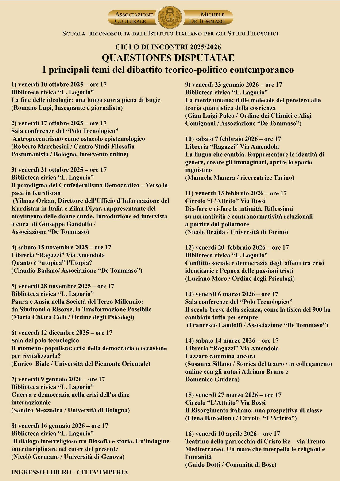 CICLO DI INCONTRI 2025/2026