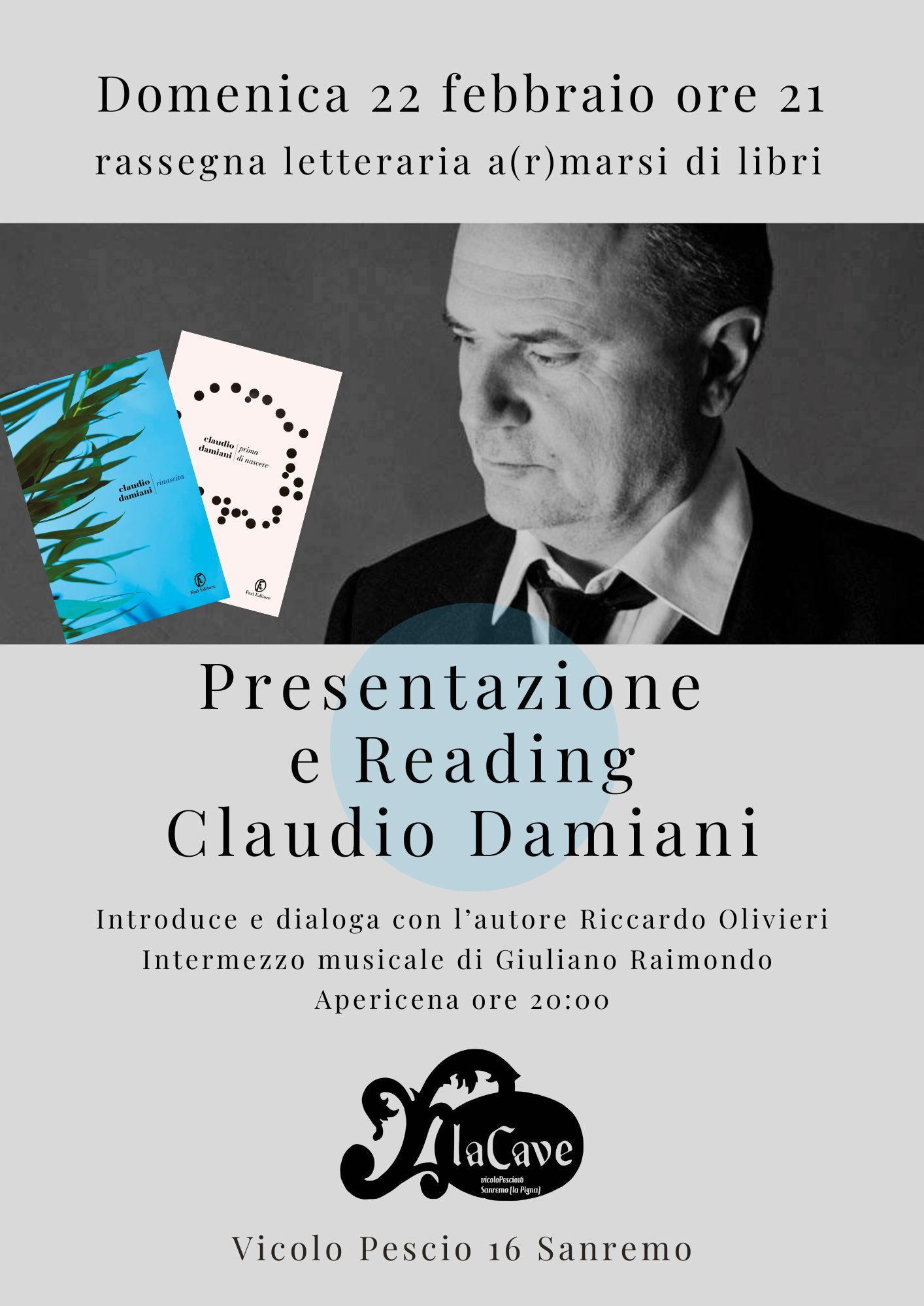 Domenica 22 febbraio alle 21:00, la rassegna letteraria a(r)mari di libri de La Cave, ospiterà Claudio Damiani, riconosciuto come uno dei più importanti poeti contemporanei del panorama italiano.