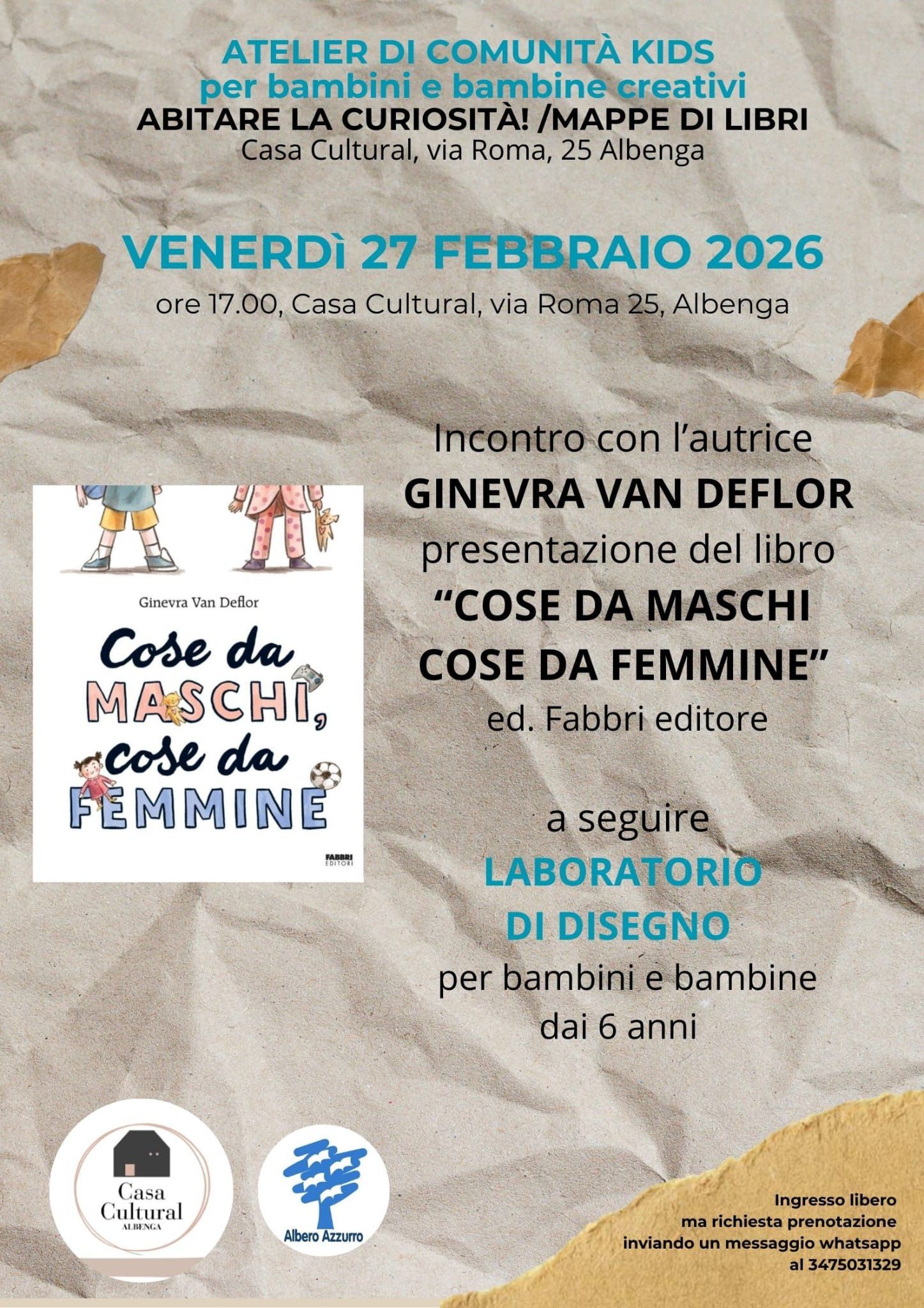 ore 17.00, Casa Cultural, via Roma 25, Albenga