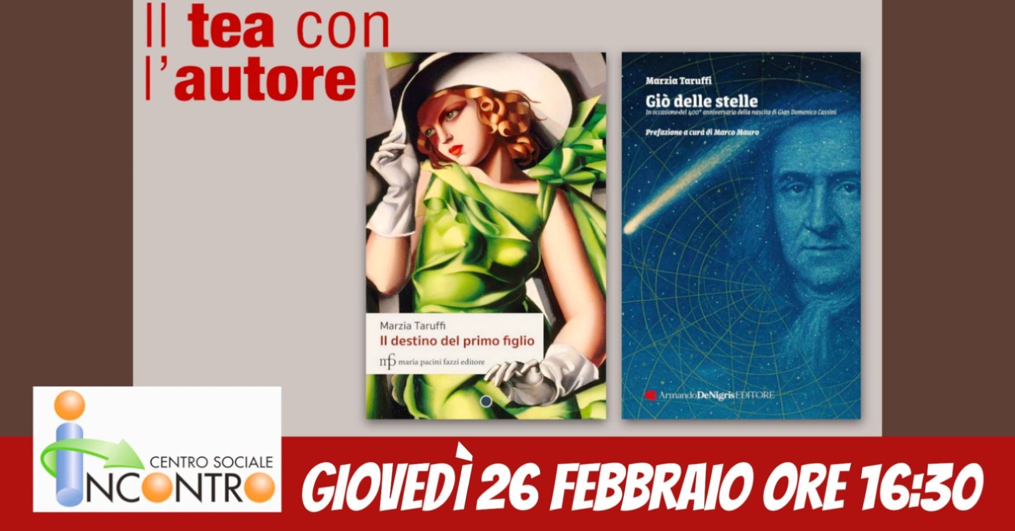 Giovedì 26 febbraio Il tea con l'autore ospiterà Marzia Taruffi, infaticabile animatrice dei Martedì Letterari e Ufficio Stampa del Casinò di Sanremo, oltre che giornalista e scrittrice, con i suoi due ultimi lavori: in "Il destino del primo figlio" (Maria Pacini Fazzi Editore) al mare e alle colline della Riviera dei Fiori si alternano i paesaggi montuosi della Carnia, le vedute di Firenze e Bologna, Roma e Napoli.