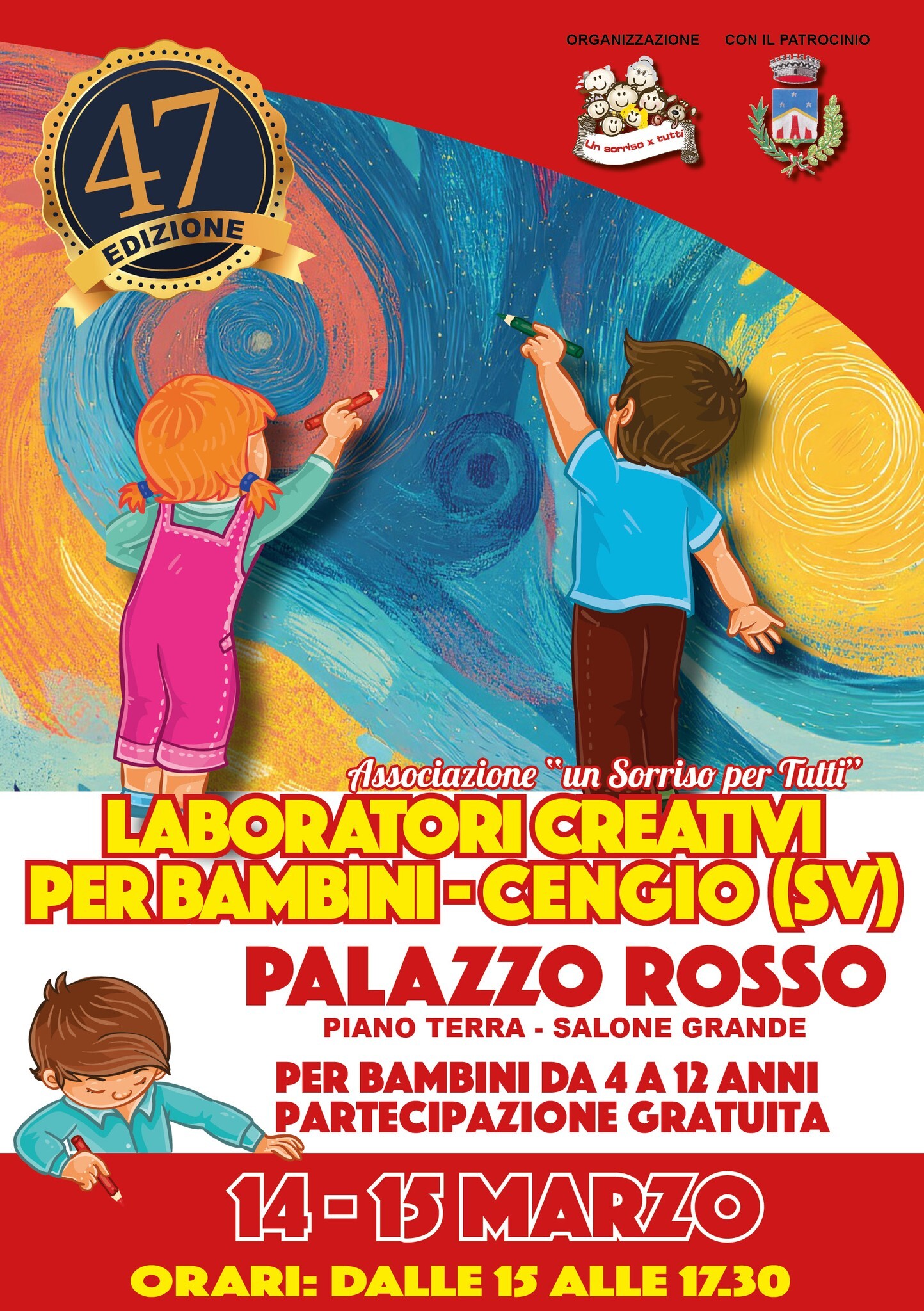 L'EDIZIONE PASQUALE DEI LABORATORI CREATIVI GIUNTI ALLA 47a EDIZIONE SI TERRA' AL PALAZZO ROSSO DI CENGIO (SALONE GRANDE AL PIANO TERRA) SABATO 14 E DOMENICA 15 MARZO 2026 CON ORARI DALLE 15 ALLE 17.30.