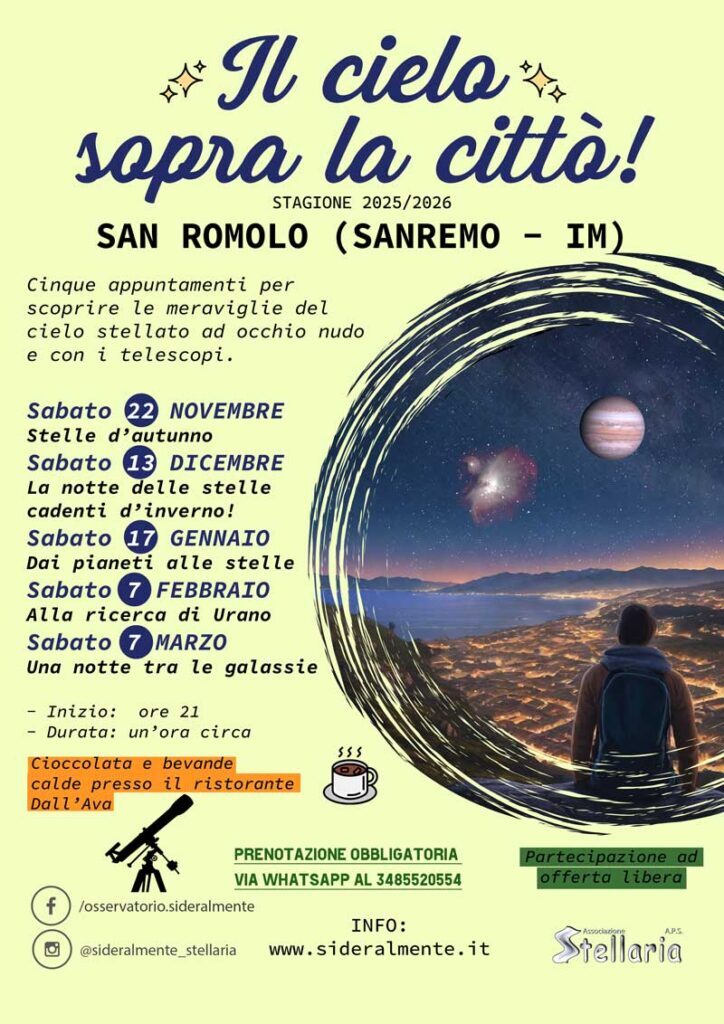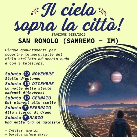 Ore 21 - Ultimo appuntamento della rassegna "Le Stelle sopra la Città". Con l'avvicinarsi della primavera il panorama celeste varia, le luminose stelle invernali declinano ma lasciano spazio a regioni di cieli disseminate di lontane e spettacolari galassie. Vi porteremo a scoprire attraverso l'osservazione ai telescopi oggetti a milioni di anni luce di distanza e a occhio nudo ammireremo l'avanguardia delle costellazioni primaverili. (Durata un'ora circa)