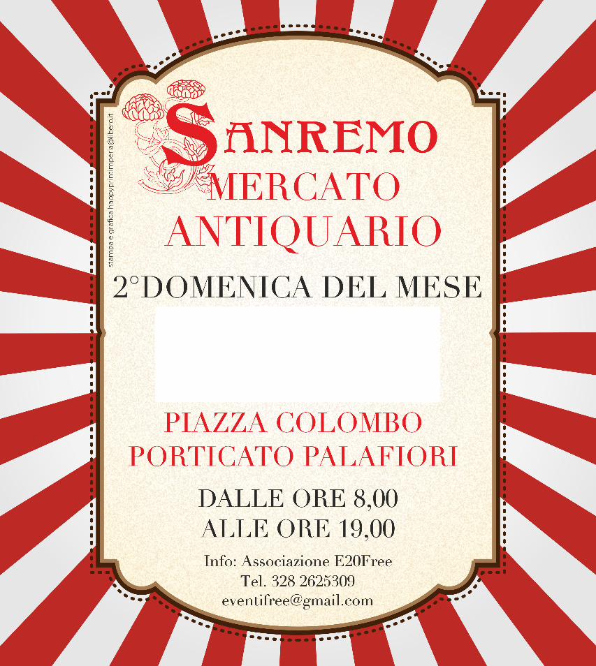 Appuntamento in Piazza Colombo e porticato Palafiori dalle 8.00 alle 19.00 con il mercato Antiquario.