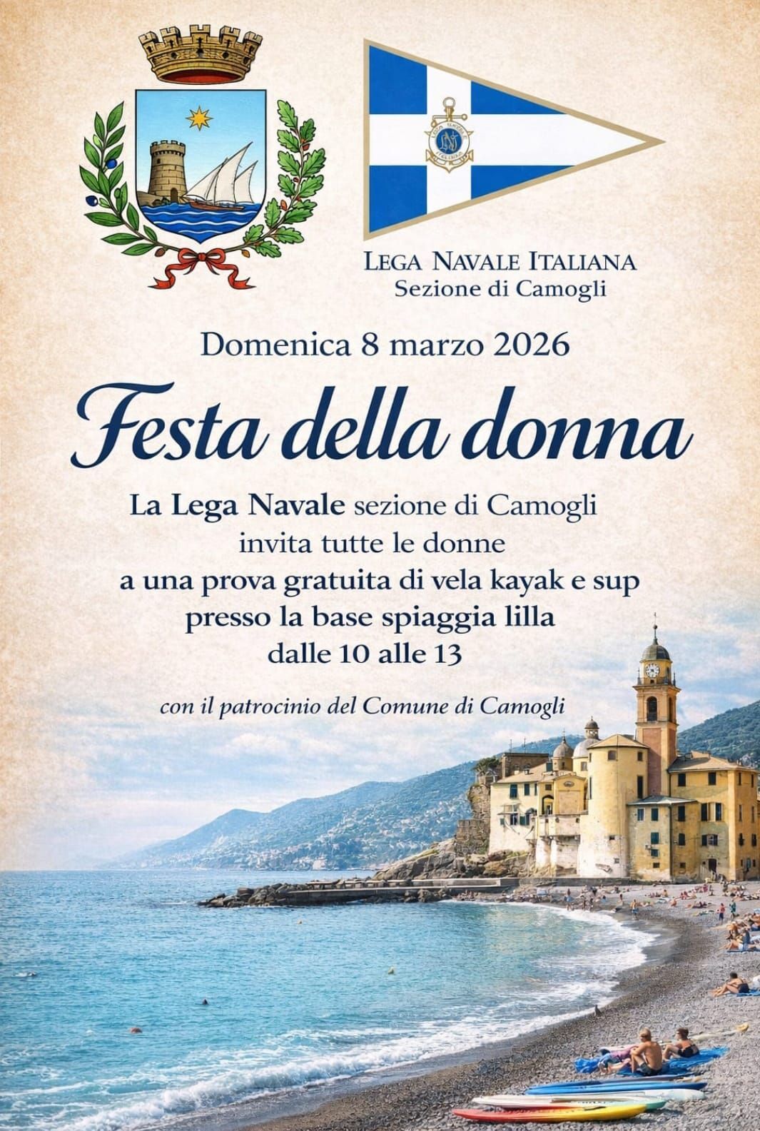 La Lega Navale sezione di Camogli invita tutte le donne a una prova gratuita di vela kayak e sup presso la base spiaggia lilla dalle 10 alle 13