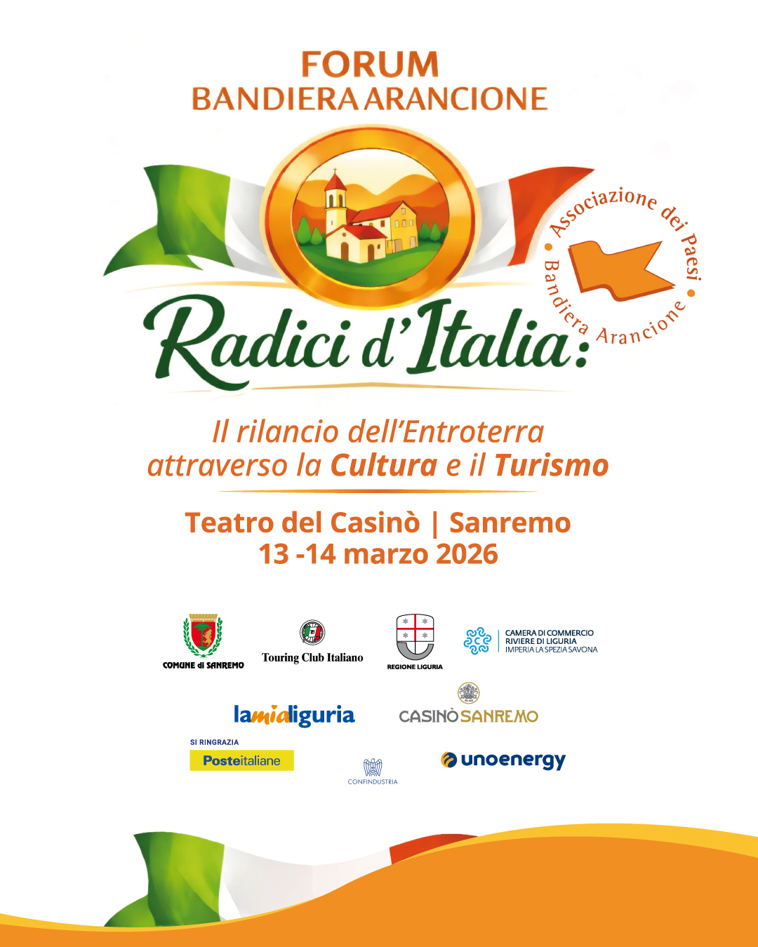 Venerdì 13 e sabato 14 marzo il Comune di Sanremo ospita presso il Casinò il Forum “Bandiera Arancione – Radici d’Italia”.