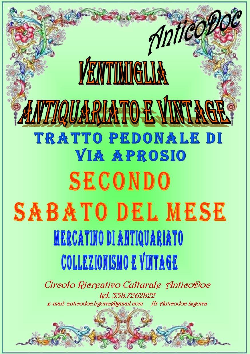 Ogni secondo sabato del mese Mercatino di Antiquariato e Vintage nel tratto pedonale di Via Aprosio dalle 9.00 alle 19.00.