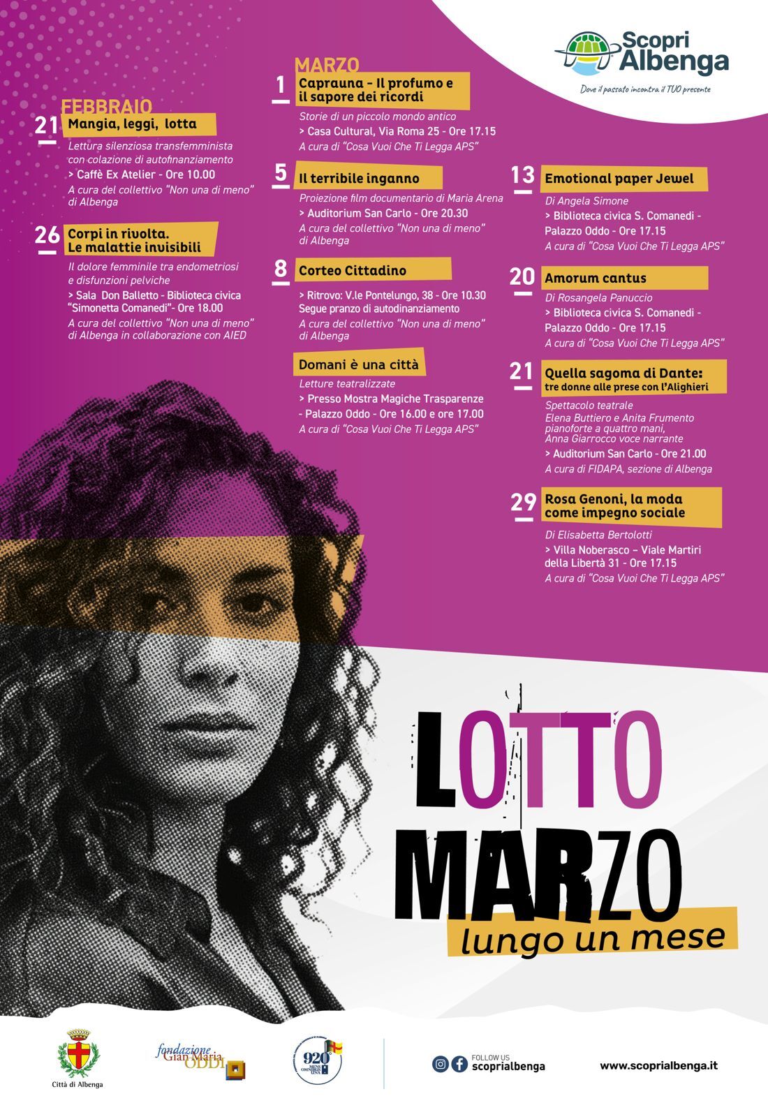 Anche quest’anno Albenga sceglie di celebrare la Giornata Internazionale della Donna trasformandola in un percorso lungo un mese: un calendario di incontri, testimonianze, approfondimenti culturali e momenti di condivisione dedicati al valore, al talento e alla forza delle donne.