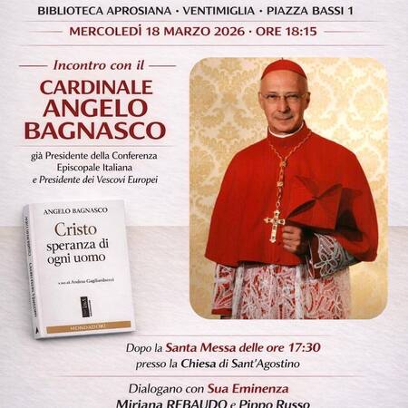 Ospite d’eccezione sarà S. Em. Rev.ma il Sig. Cardinale Angelo Bagnasco, Arcivescovo emerito di Genova, già presidente della CEI - Conferenza Episcopale Italiana e della Conferenza episcopale europea, che presenterà il suo nuovo libro dal titolo “Cristo speranza di ogni uomo”.