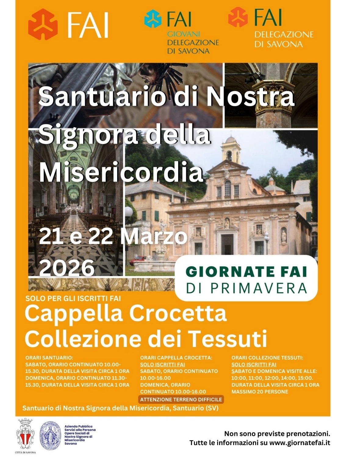 Le Giornate FAI sono eventi di raccolta fondi: partecipare a ogni visita con una donazione significa sostenere la missione della Fondazione. In caso di particolare affluenza l’ingresso al luogo potrebbe non essere garantito. Ingresso dedicato a chi ha la tessera FAI, con possibilità di fare la tessera in loco