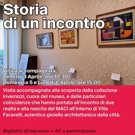 Visita accompagnata alla scoperta della collezione Inverzizzi, cuore del museo, e delle particolari coincidenze che hanno portato all’incontro di due realtà e alla nascita del MACI all’interno di Villa Faravelli, autentico gioiello architettonico della città.