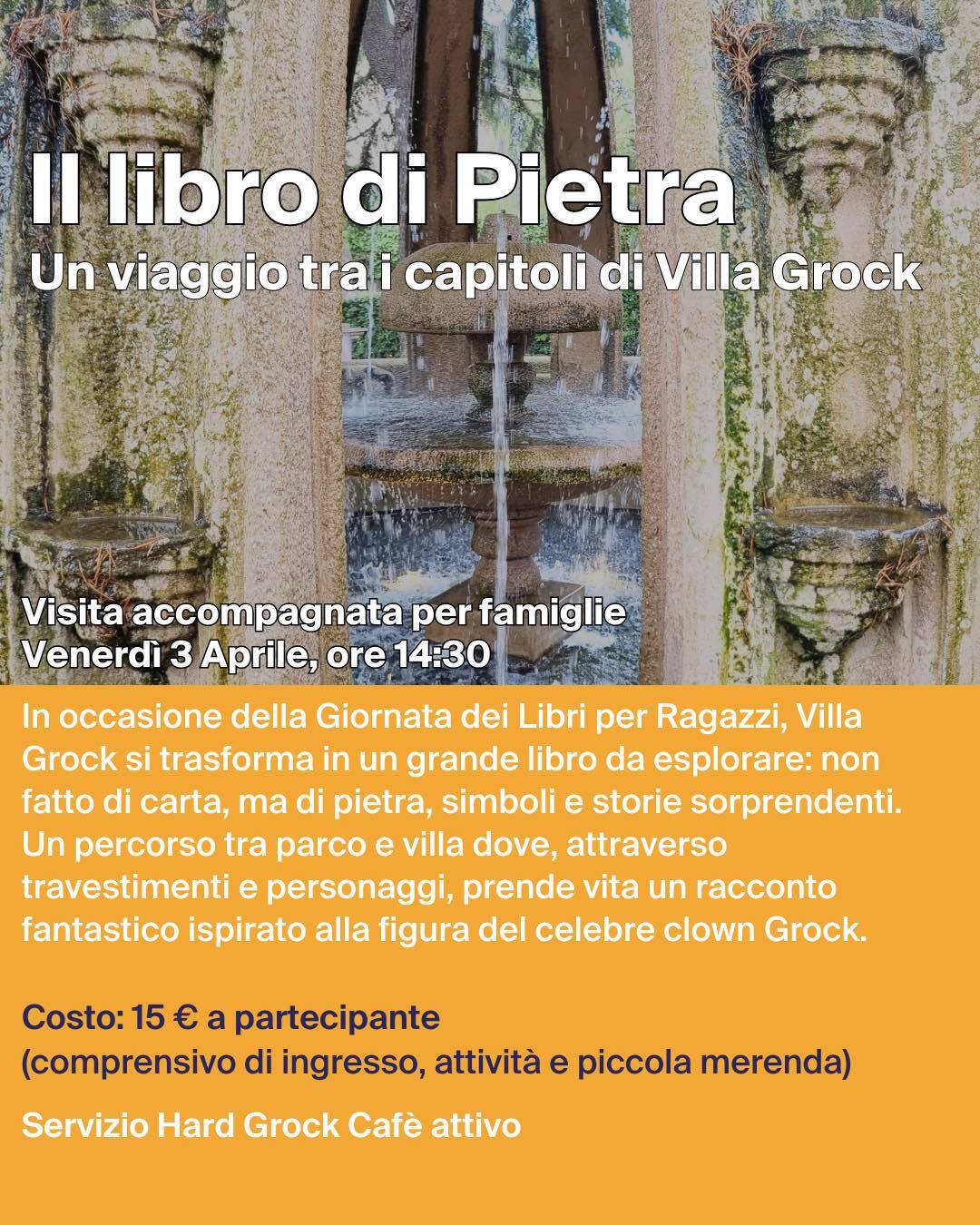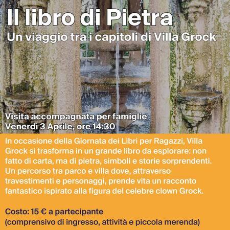 In occasione della Giornata dei Libri per Ragazzi, Villa Grock si trasforma in un grande libro da esplorare: non fatto di carta, ma di pietra, simboli e storie sorprendenti. Un percorso tra parco e villa dove, attraverso travestimenti e personaggi, prende vita un racconto fantastico ispirato alla figura del celebre clown Grock.