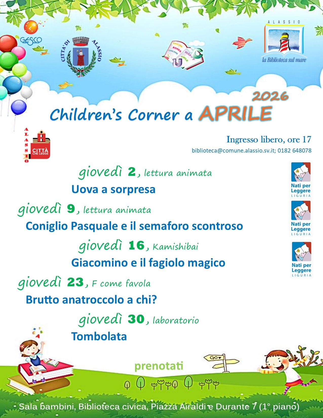 Sala bambini – Biblioteca Piazza Airaldi e Durante ore 17.00
