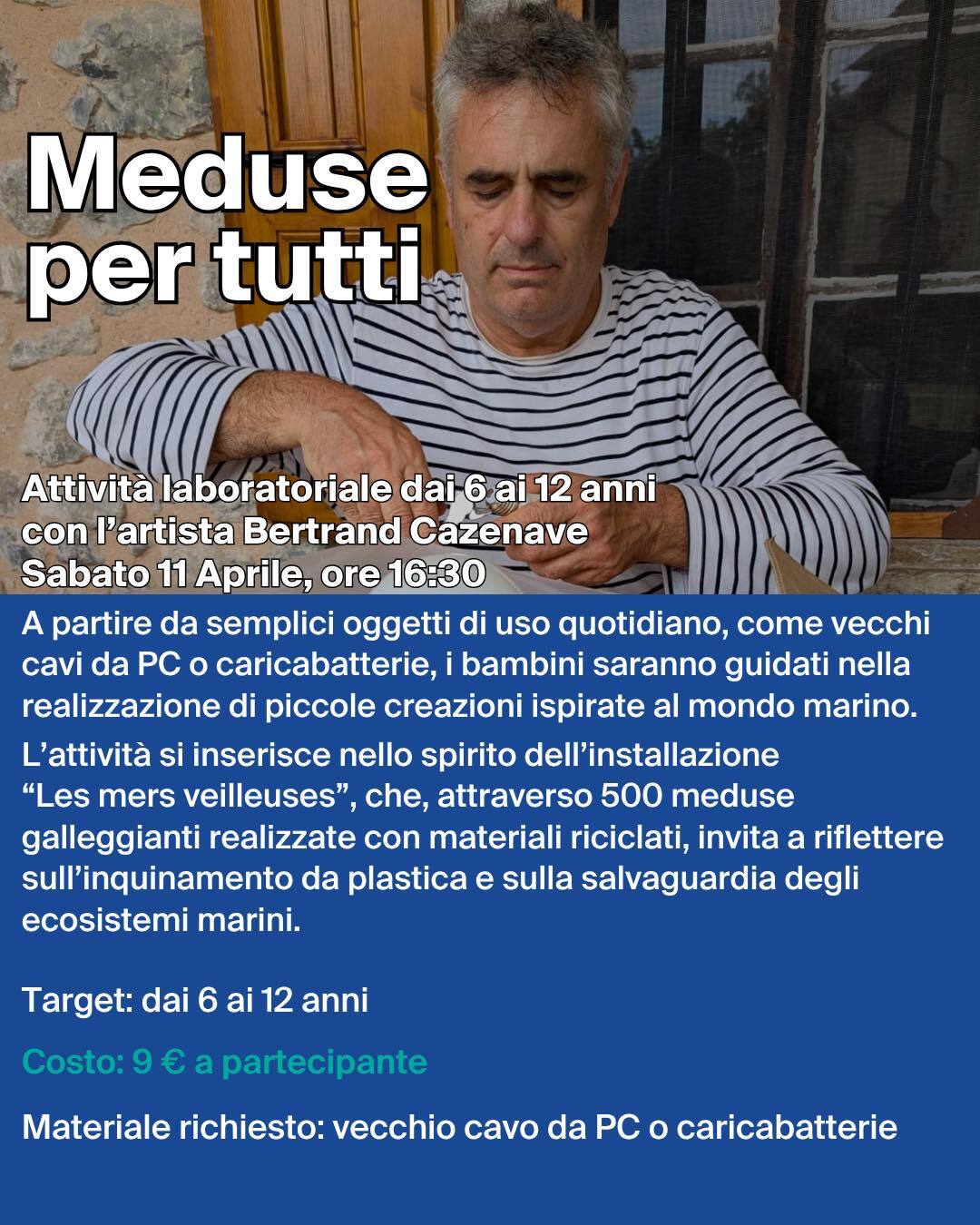 L’attività si inserisce nello spirito dell’installazione “Les mers veilleuses”, che, attraverso 500 meduse galleggianti realizzate con materiali riciclati, invita a riflettere sull’inquinamento da plastica e sulla salvaguardia degli ecosistemi marini.