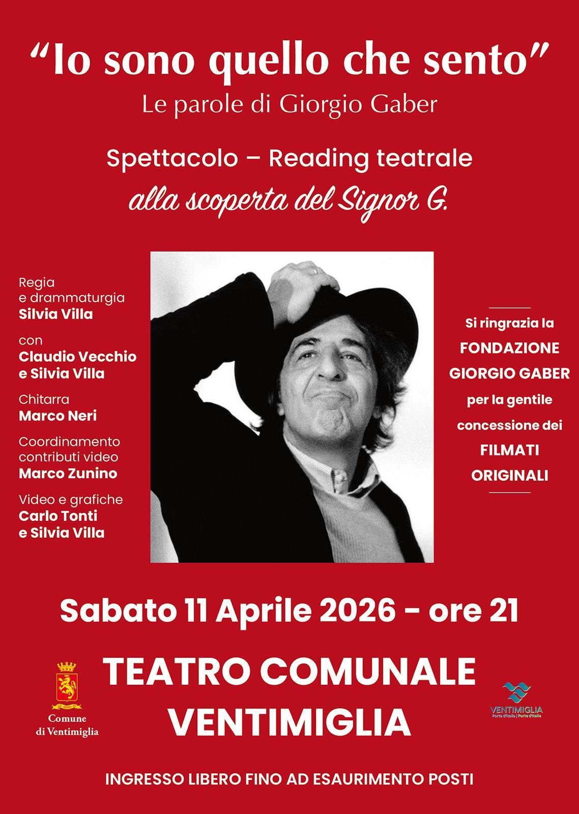 Uno SPETTACOLO-READING teatrale brillante ed intenso tra Pensieri, Parole e Musica di questo meraviglioso e sempre attuale Artista, con numerosi contributi video gentilmente concessi dalla FONDAZIONE GIORGIO GABER, che si ringrazia di cuore, con cui ha collaborato negli anni la regista.