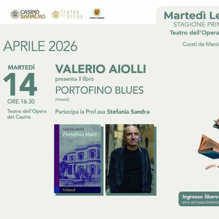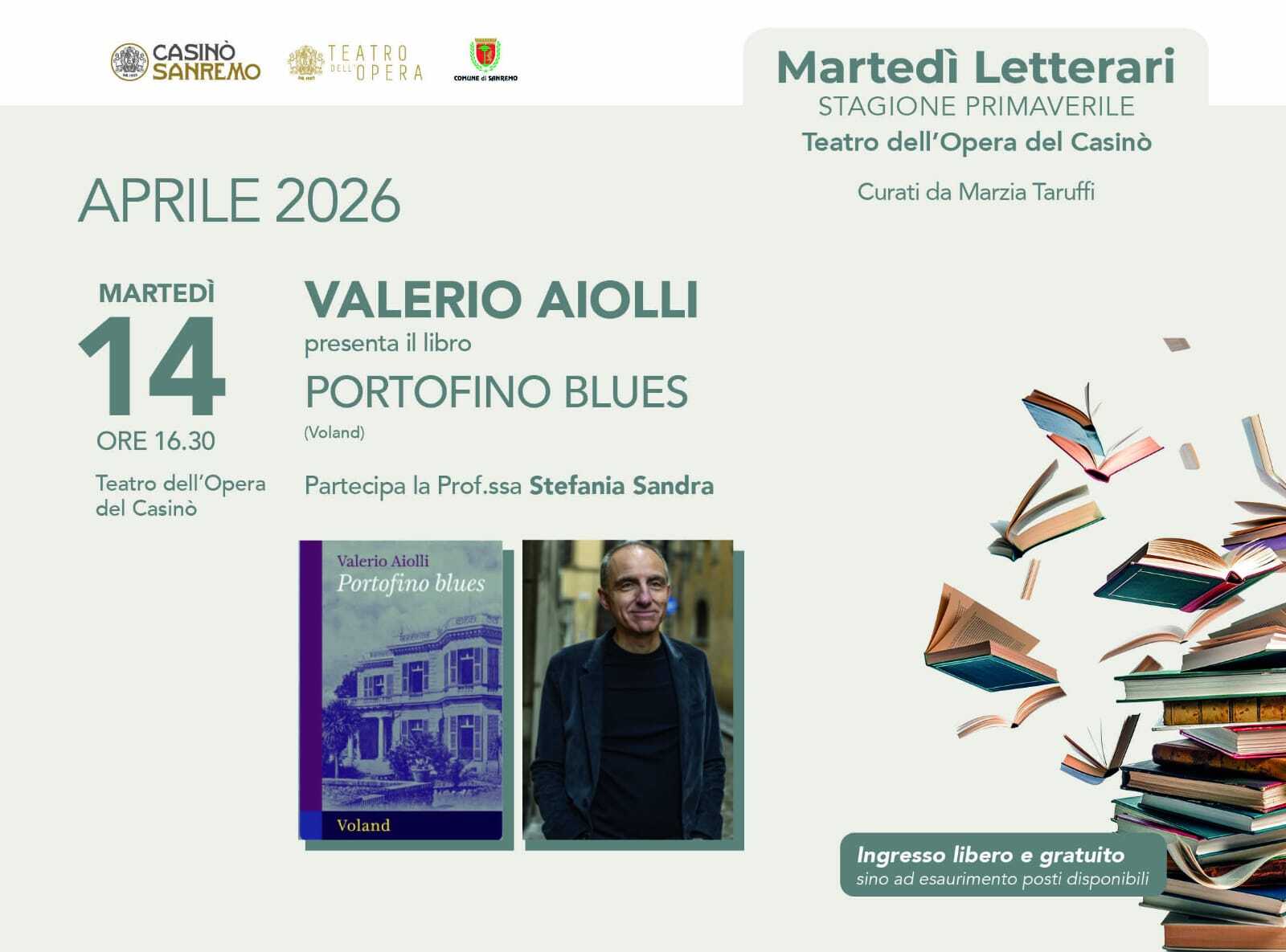 Martedì 𝟭𝟰 𝗮𝗽𝗿𝗶𝗹𝗲 alle ore 16,30, 𝗩𝗮𝗹𝗲𝗿𝗶𝗼 𝗔𝗶𝗼𝗹𝗹𝗶 presenterà il suo romanzo al 𝗧𝗲𝗮𝘁𝗿𝗼 𝗱𝗲𝗹𝗹'𝗢𝗽𝗲𝗿𝗮 𝗱𝗲𝗹 𝗖𝗮𝘀𝗶𝗻𝗼̀ di Sanremo.