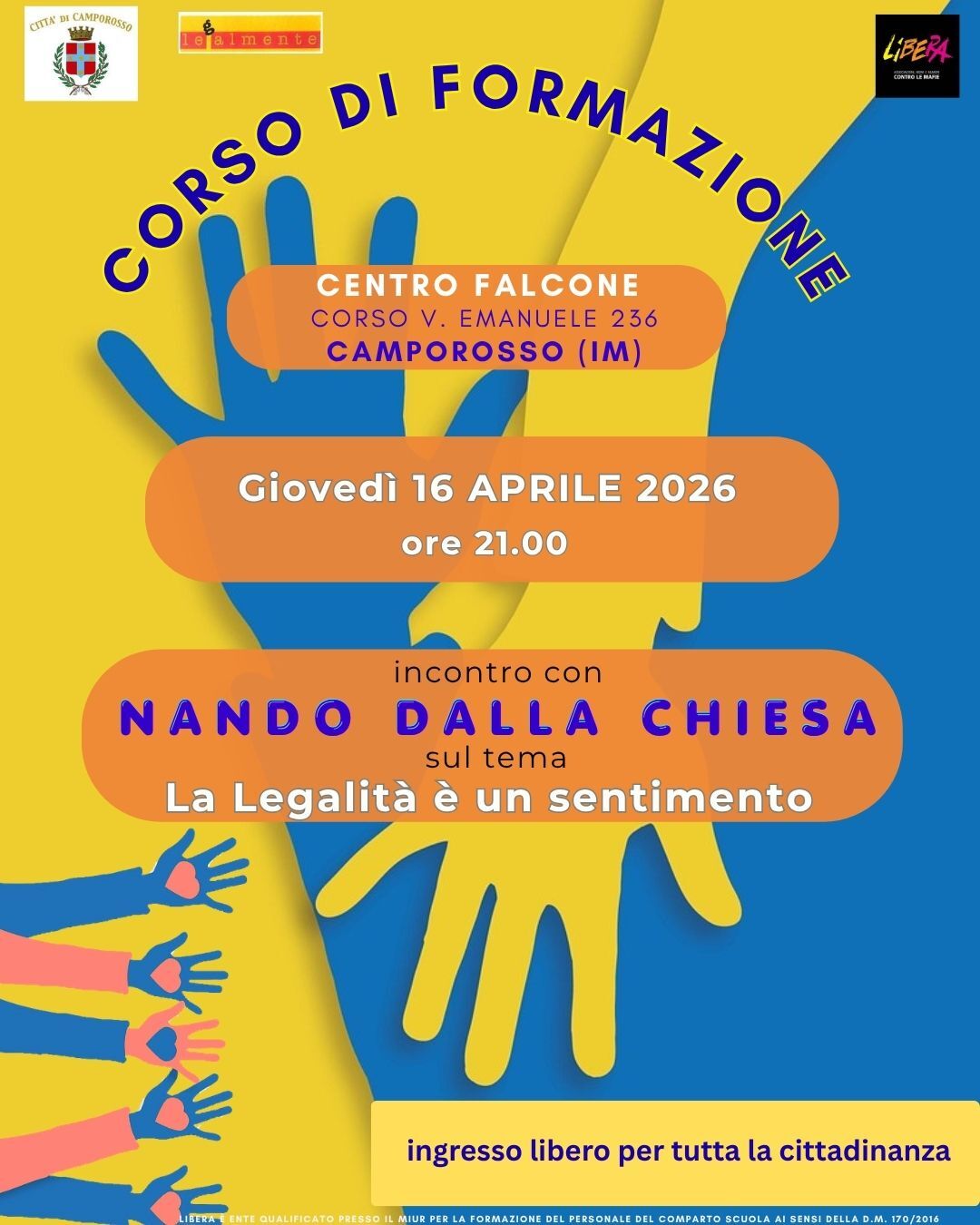 Non perdete l'incontro con NANDO DALLA CHIESA giovedì 16 aprile 2026 alle ore 21 al Centro Falcone di CAMPOROSSO.
