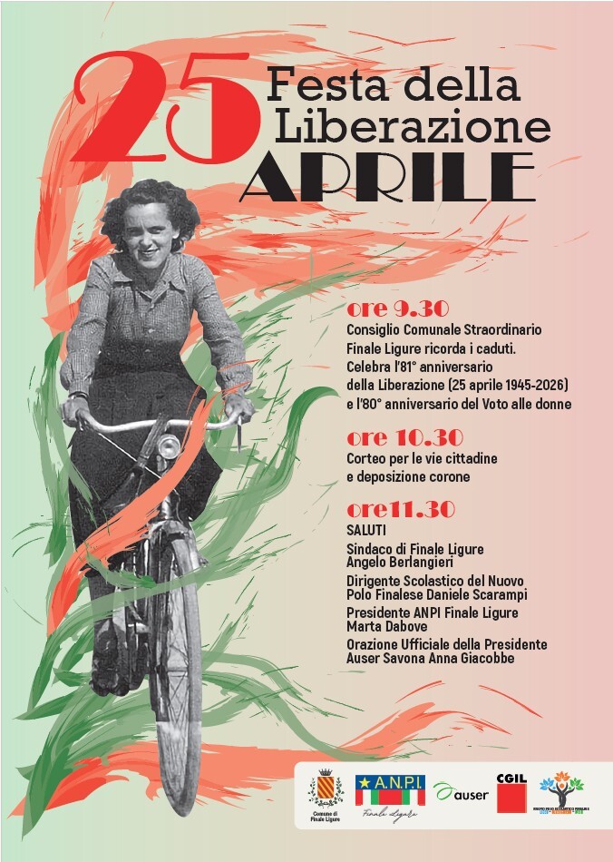 Il 25 aprile Finale Ligure celebra l'81° anniversario della Liberazione e l'80° anniversario del Voto alle donne.