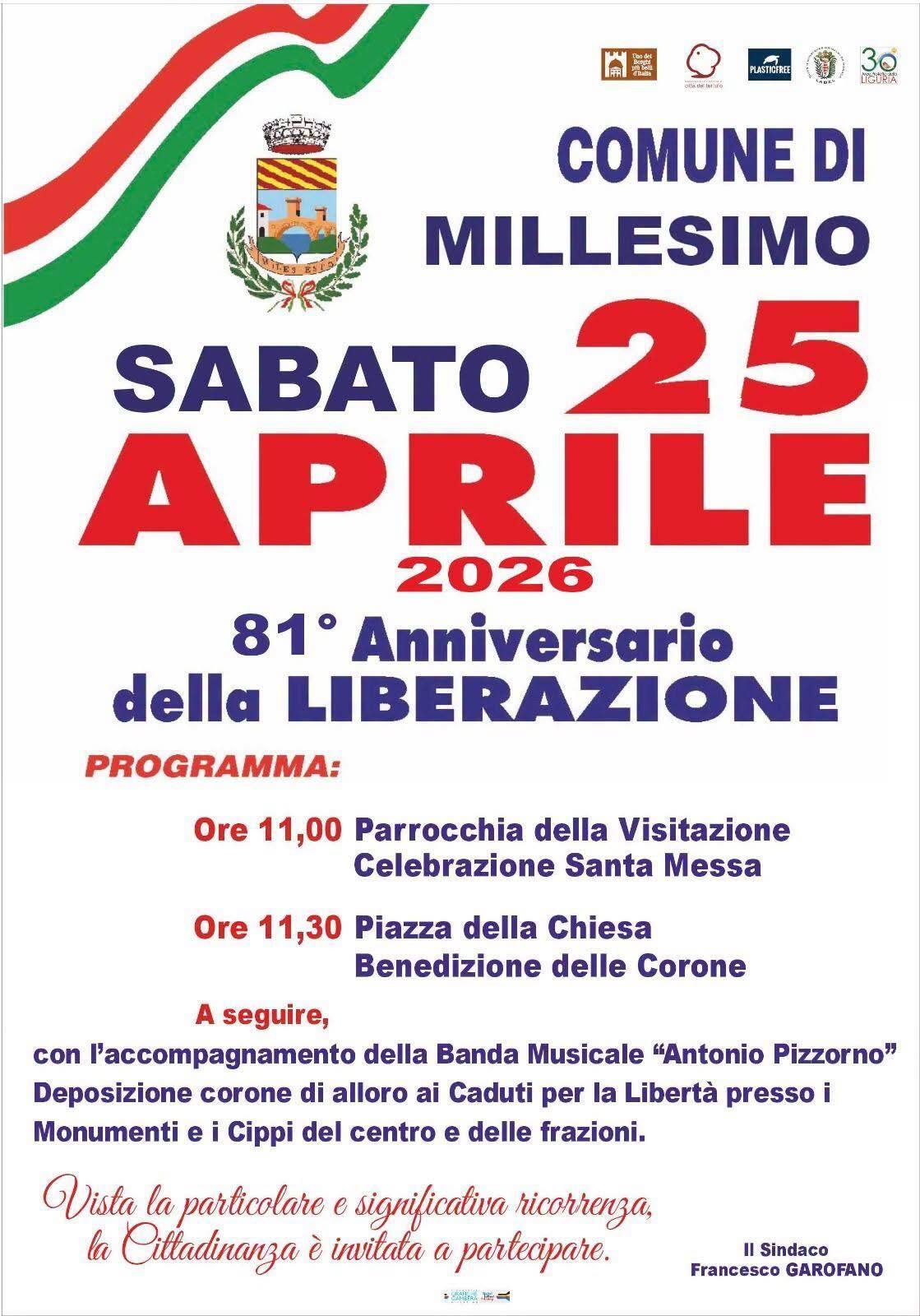 ✅️ Vista la particolare importanza della ricorrenza, la cittadinanza è invitata a partecipare. 🇮🇹 Il programma di sabato 25 aprile - Celebrazioni Ufficiali Comune di Millesimo