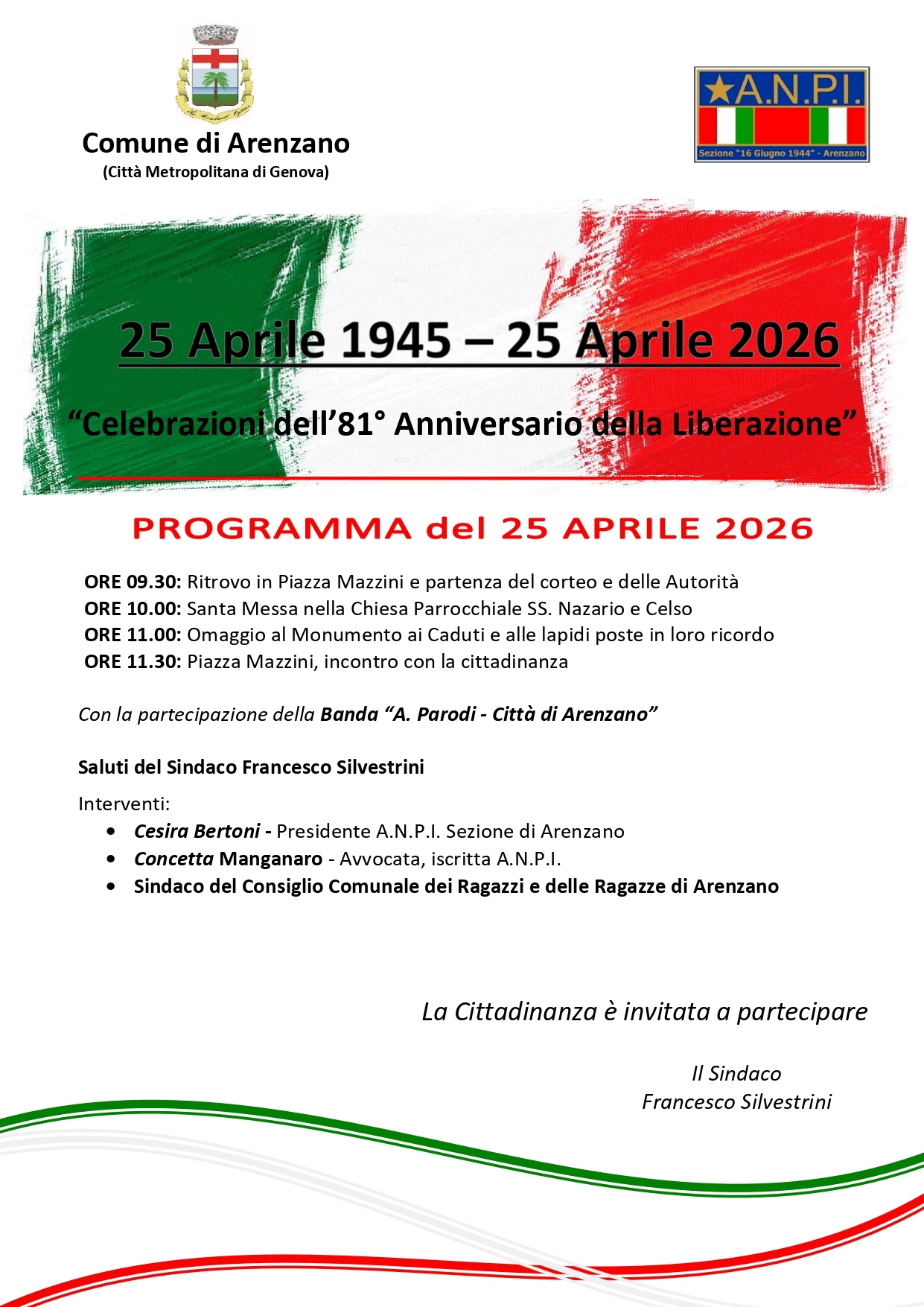 Con la partecipazione della Banda “A. Parodi -Città di Arenzano”
