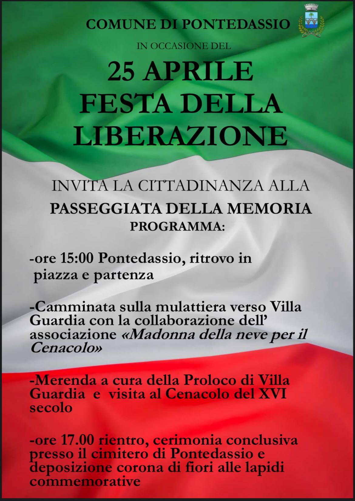 -ore 17.00 rientro, cerimonia conclusiva presso il cimitero di Pontedassio e deposizione corona di fiori alle lapidi commemorative