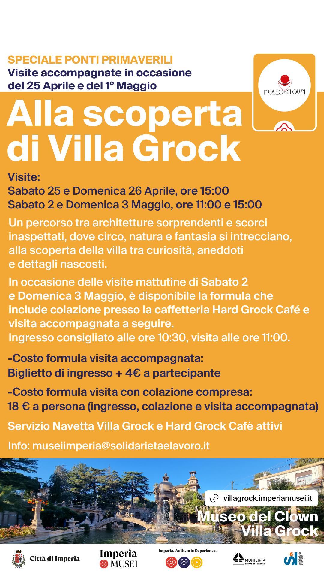 Il servizio navetta Villa Grock sarà attivo Sabato 25 e Domenica 26 Aprile, Venerdì 1°, Sabato 2 e