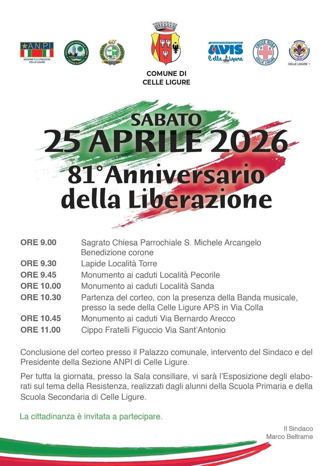 Per tutta la giornata, presso la Sala consiliare, vi sarà l'Esposizione degli elaborati sul tema della Resistenza, realizzati dagli alunni della Scuola Primaria e della Scuola Secondaria di Celle Ligure.