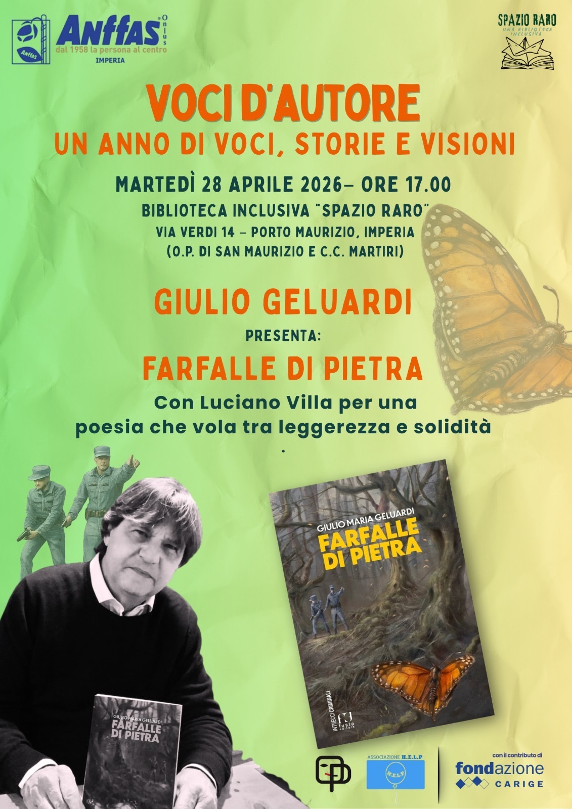 Prossimo incontro con l’autore Giulio Geluardi- martedì 28 aprile ore 17 presso la Biblioteca Inclusiva Spazio Raro - gestita da ANFFAS Imperia - Via Verdi 14, Imperia Porto Maurizio