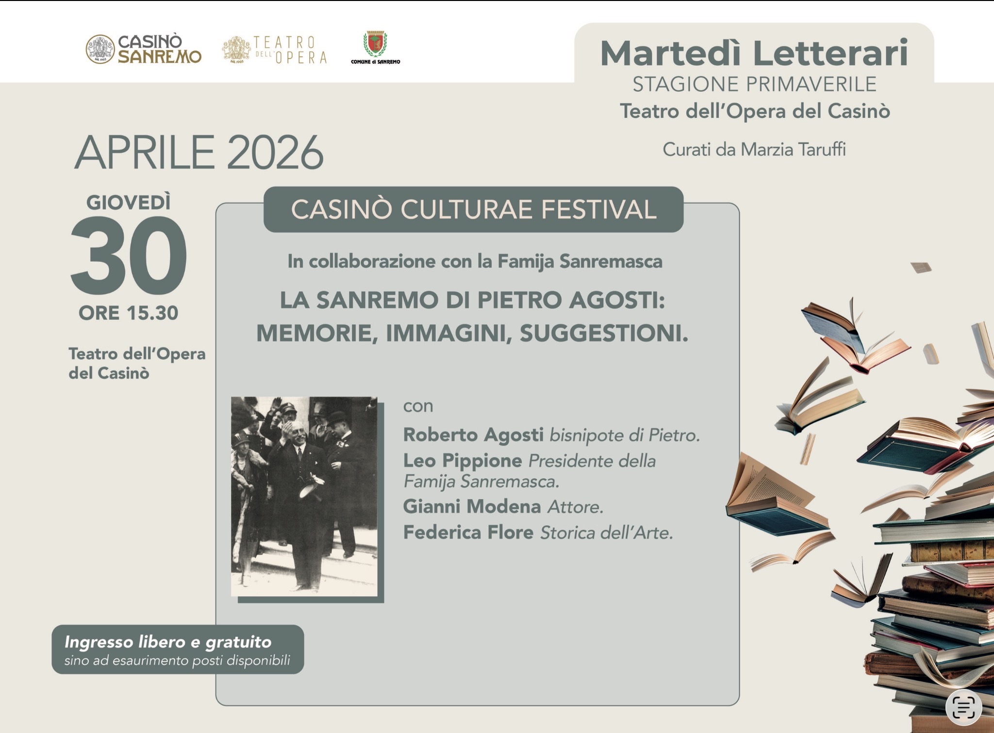 Ingresso libero e gratuito sino ad esaurimento posti disponibili