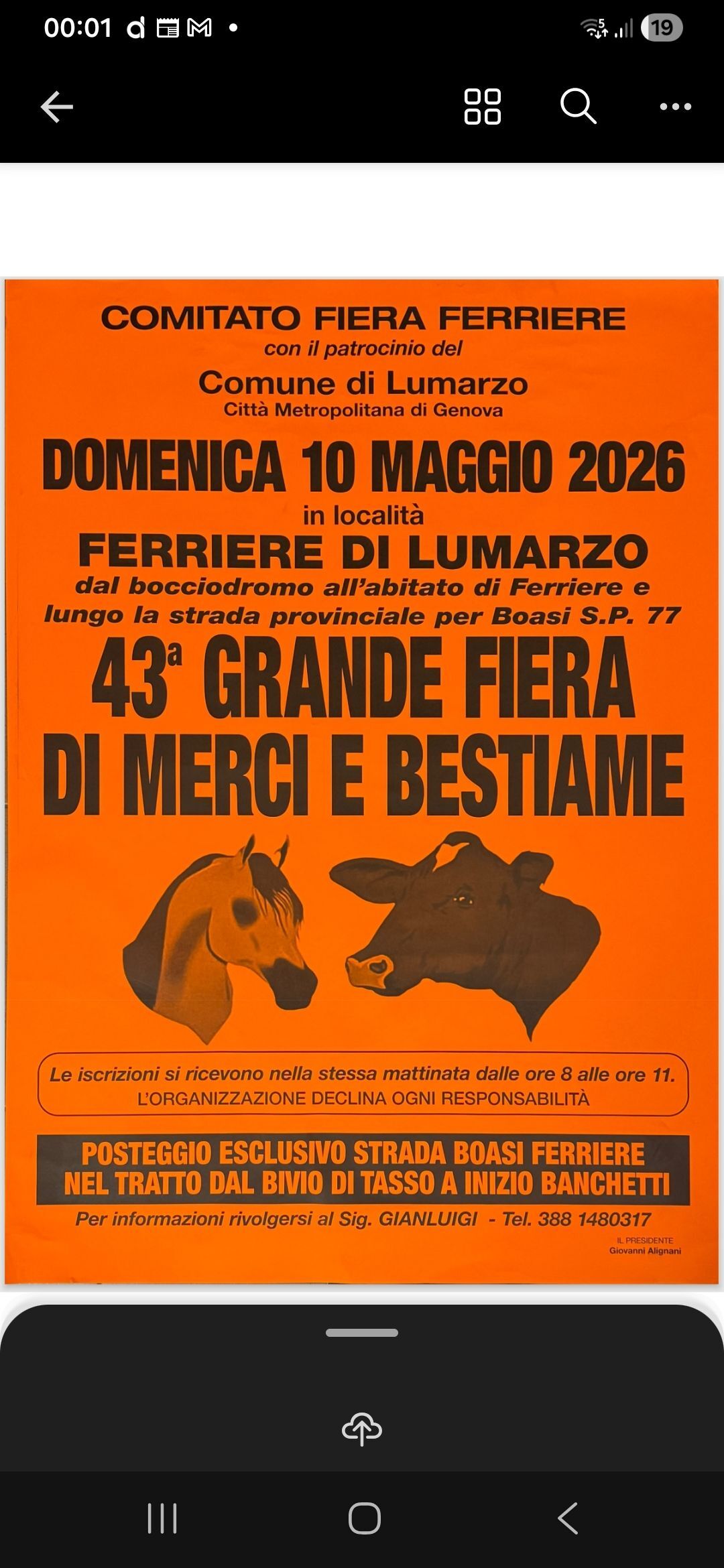 DOMENICA 10 MAGGIO 2026 in località FERRIERE DI LUMARZO dal bocciodromo all'abitato di Ferriere e lungo la strada provinciale per Boasi S.P. 77