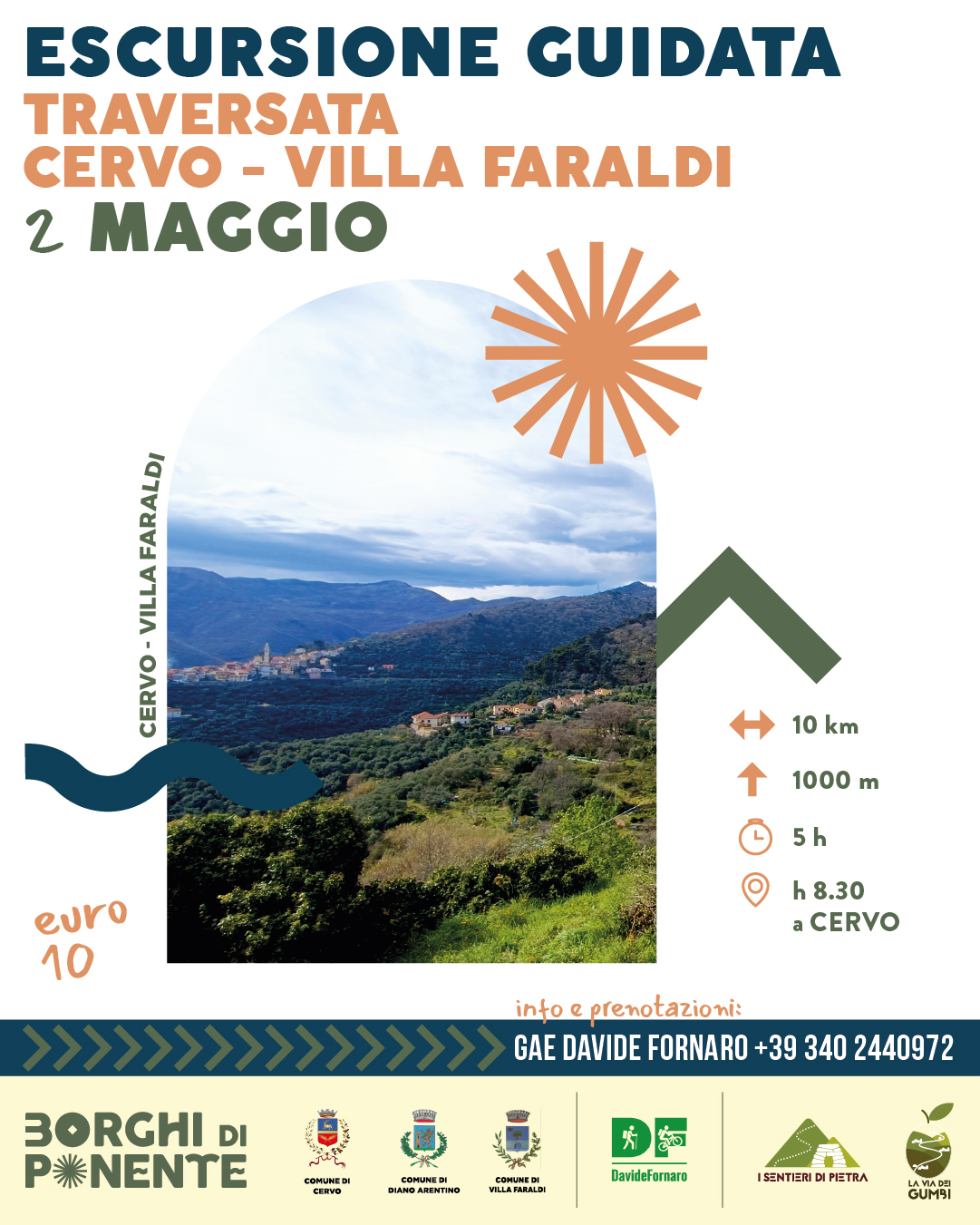 😃 Un percorso inedito e spettacolare per il weekend! Sabato 2 maggio è in programma la traversata di 10 km Cervo-Villa Faraldi. Da uno dei borghi più belli d’Italia, affacciato sul mare, a un altro borgo tra i più noti dell’antica Communitas Diani. Sarà un’esperienza immersa tra natura in fiore e paesaggi mozzafiato!