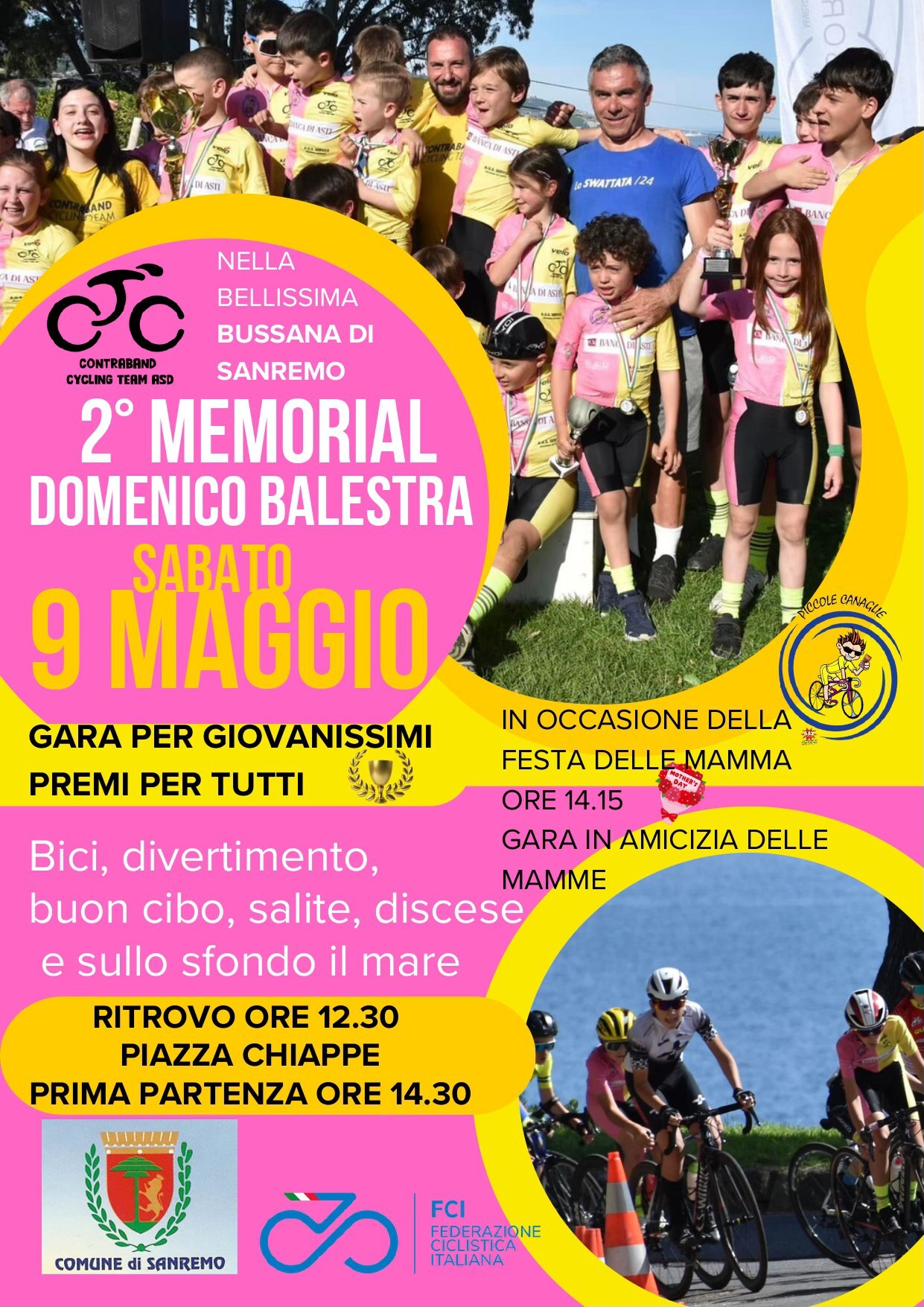 2° Memorial Domenico Balestra, gara su strada dedicata alla categoria Giovanissimi (G1-G6 - PG E MPG), che si svolgerà sabato 9 maggio a Bussana di Sanremo (IM), in Piazza Chiappe.